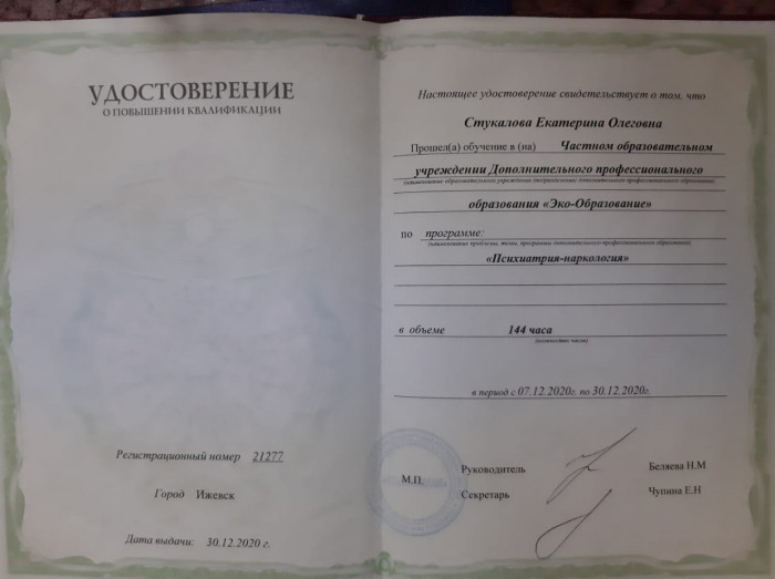 - консультации психотерапевта;