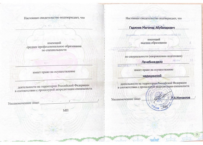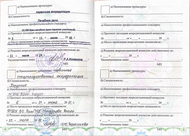 • 2021 г. – Ординатура: Ростовский государственный медицинский университет (хирургия).